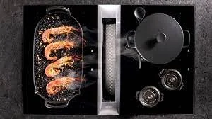 Instead of letting cooking vapours and odours rise in the first place, BORA cooktop extractors draw them away where they are created, directly extracting them from the pot, roaster, pan or grill on the cooktop. And they do this not by magic but by applying the basic principles of fluid mechanics. For this BORA simply uses a cross flow which is greater than the speed at which the cooking vapours rise.